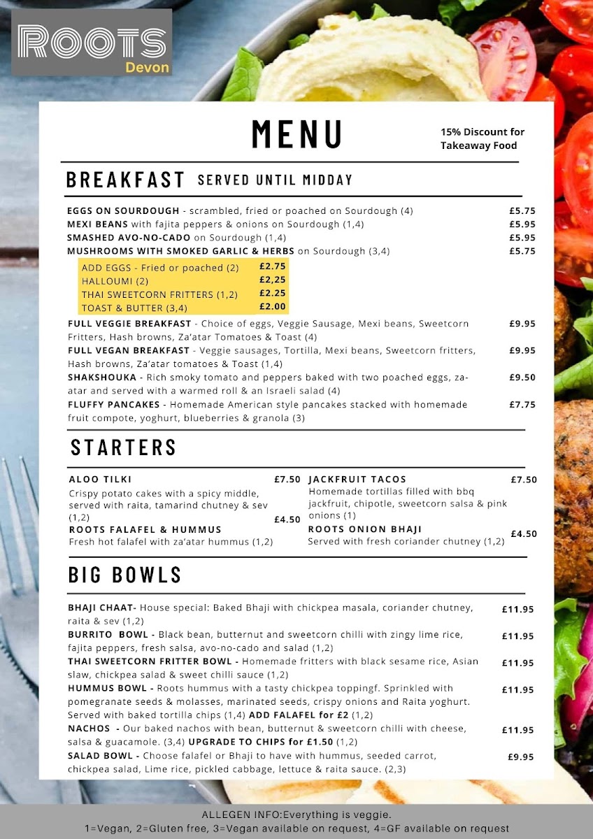 “ Enjoyed a late Vegetarian Breakfast this morning with my daughter. Food was lovely and my hot chocolate was hot and chocolatey. So much so that I purchased a tin and also some of the tasty chutney that was on sale. Roots really does have it all and if your vegetarian or vegan you should give it a go. You won't be disappointed. ”
